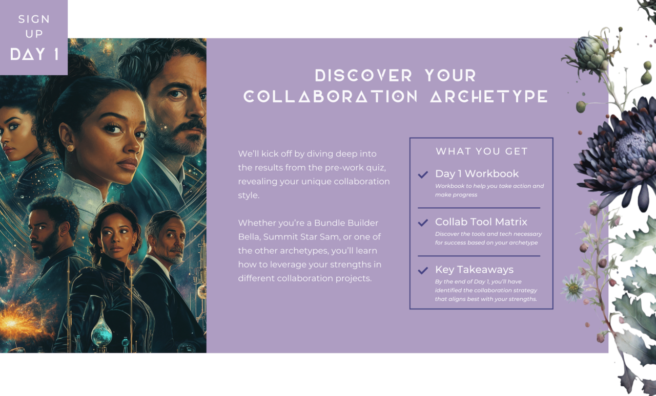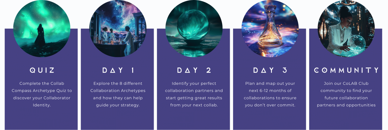 Complete the Cosmic Compass Quiz before Day 1 and come ready to take action! We’ll be diving right into identifying your collaboration strengths and strategies.