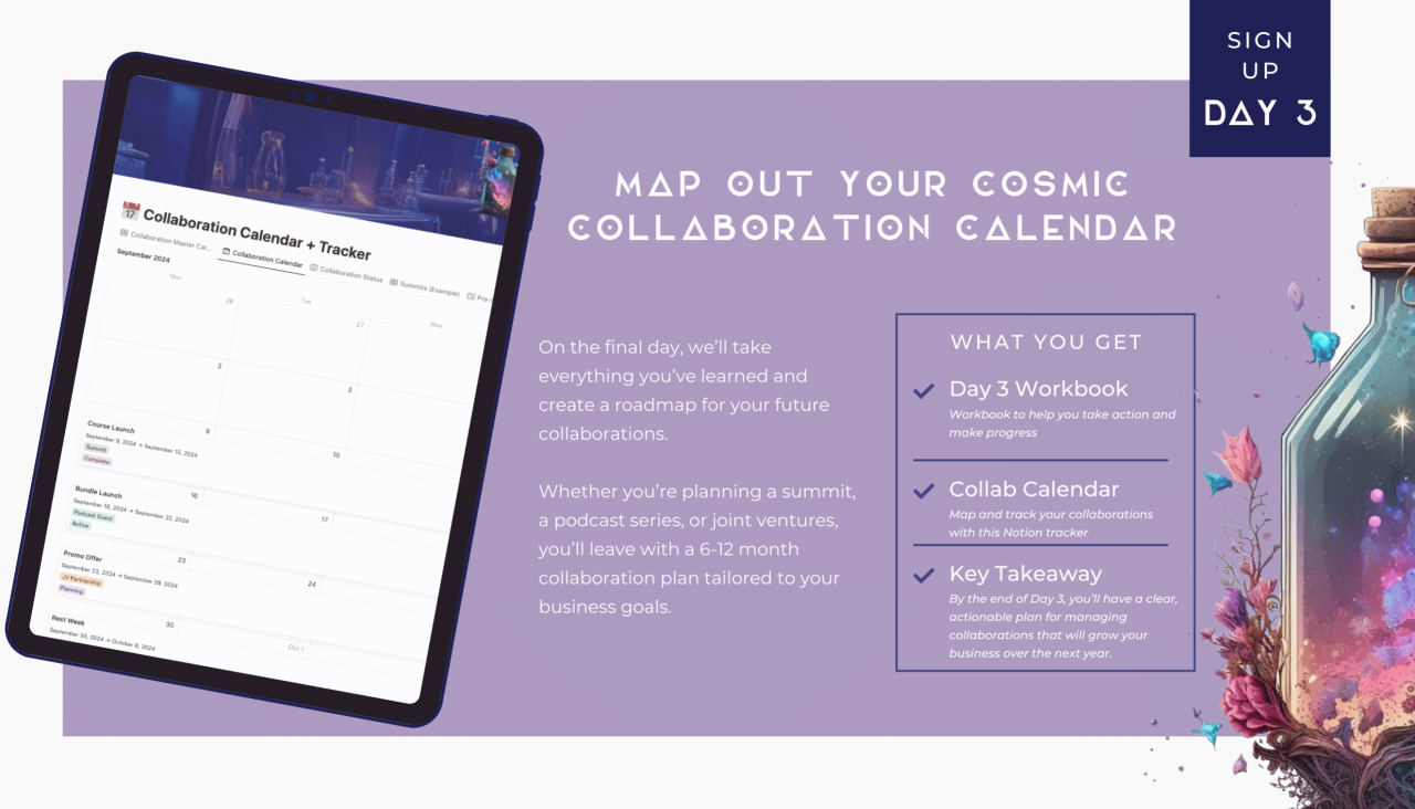 A 3-day bootcamp where you'll learn how to leverage the power of collaboration to generate leads, build relationships, and grow your business, without the overwhelm.
